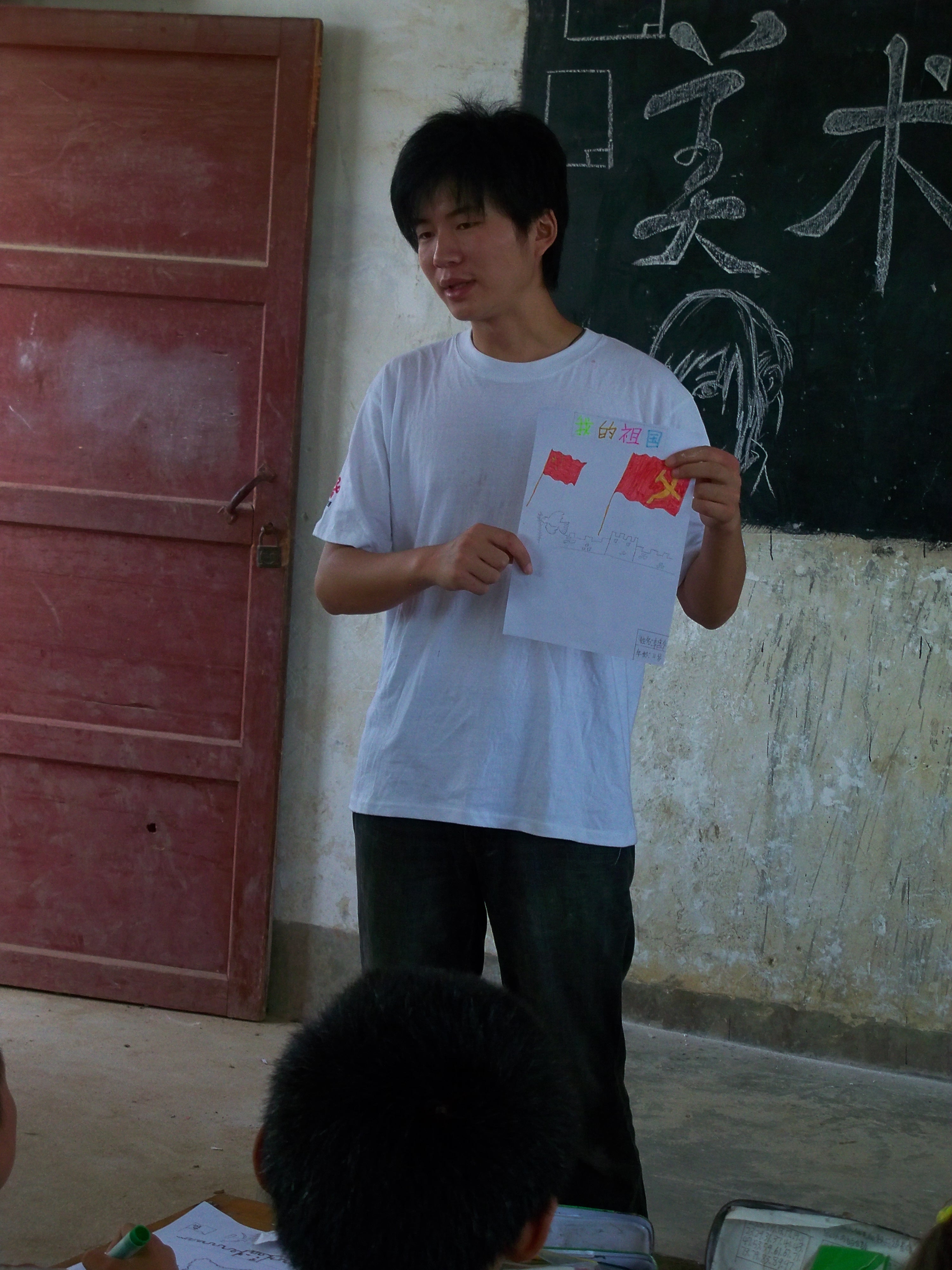 在教学过程中,美术辅导老师王炎耐心细致的给孩子们讲解了画画的技巧,并以“我的祖国“为主题,让大山深处的孩子们用绘画表现出他们眼中的祖国。孩子们认真体会着老师所说的每一句话,用心画出了他们心中的祖国,虽然他们没有基础,但是在王炎老师的帮助下,他们顺利完成了自己的处女作,在孩子们眼中,祖国是有山有水、有花有草,还有党旗在迎风飘扬。