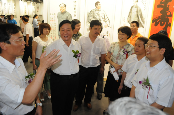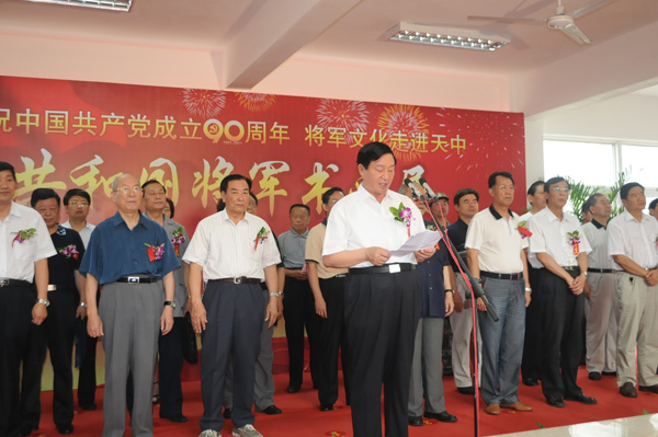 刘国庆致开幕辞,唐天标上将发表讲话并为书画展剪彩。开幕式由市委副书记杨喜廷主持。