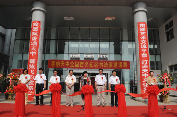 开幕式上青年书法家聂政先生发表了热情洋溢的讲话,随后莅临开幕式的领导共同为开幕式剪裁,市人大副主席张杰宣布开幕。由大众文艺出版社编辑出版的《墨韵天中----全国百名知名书法家邀请展作品集》首发式同时进行。
