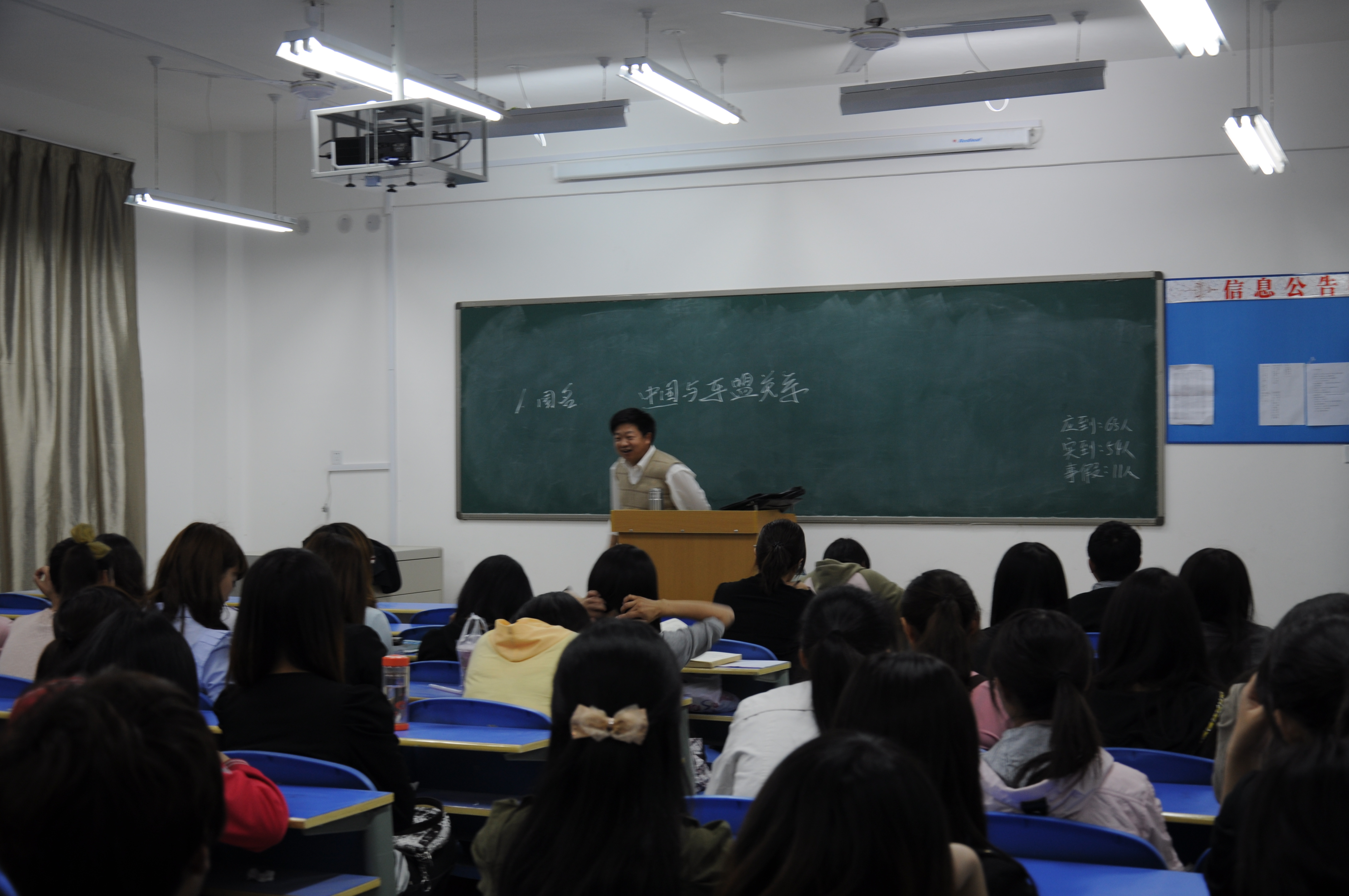 袁老师通过东盟十国的概况、东盟在我过周边外交中的地位、历史与华侨问题、中国威胁论、美国存在的问题、中国历史文化问题、我国的外交方针等方面为同学们详细论述了中国与东盟的关系。