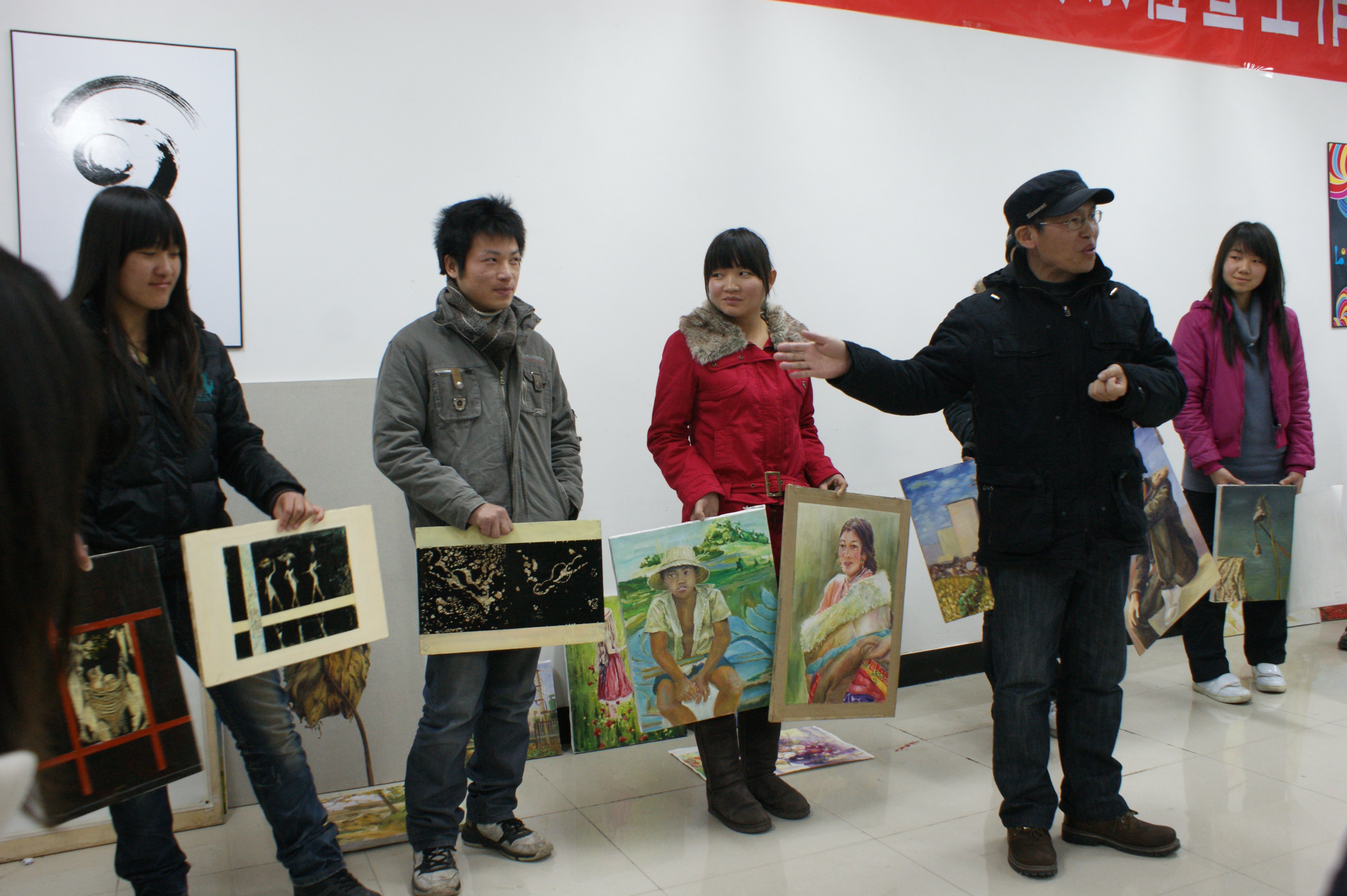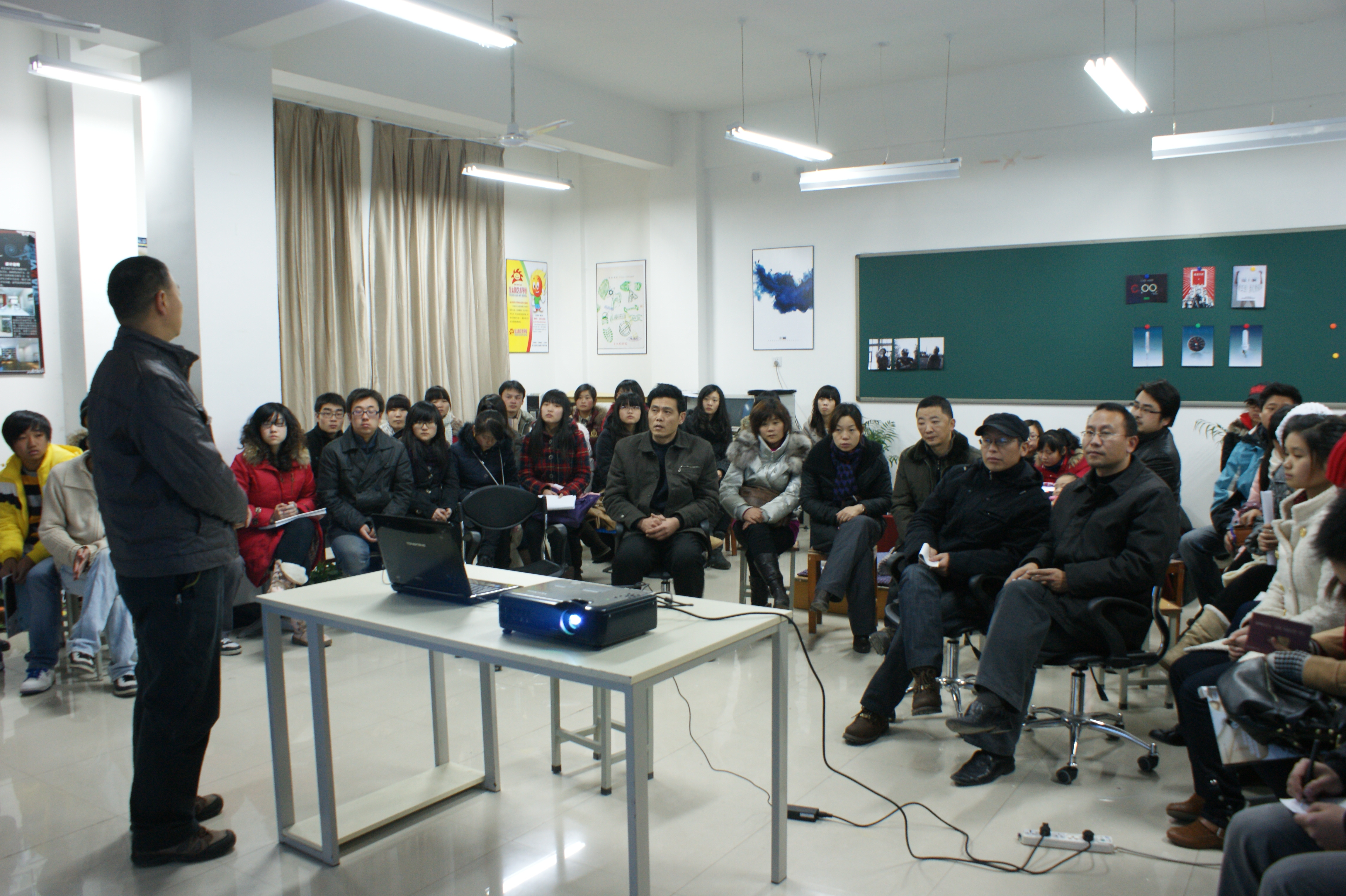12月14日晚7点在美术系艺术设计实践工作室召开了有系领导班子、工作室全体指导老师及学生参加的实践工作室工作汇报会,师生就工作室成立来所创作的作品向系领导作以汇报,同时也进行了相互交流。会议由美术系实践实训工作室主任刘红伟主持,梁立民主任首先发言,他对工作室的成立宗旨、前期筹备及成立后卓有成效的进展表示了肯定,同时也对工作室内的所有指导教师和学生寄予了希望。美术学及艺术设计工作室的二位负责人就近期内各自所进行的工作向领导和师生们进行汇报,两个工作室里的16名指导教师也携所带学生及作品分别作了讲解和分析,整个活动进行了两个多小时,交流氛围 浓厚。最后,系党支部书记李信生以“感想、感触、感动”三个词对此次活动作了总结,同时要求像这样的汇报要定期、长期召开。工作室的老师和学生也要不断拿出更好、更精的艺术作品。