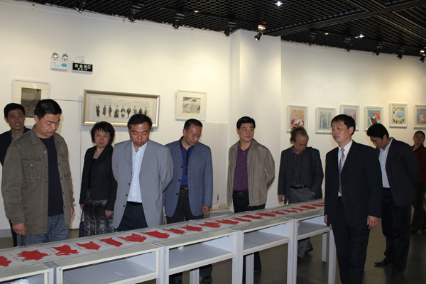 展览期间,4月21日由杨钢、许康健组成的省教育厅艺术展演工作检查组,在院党委副书记张前中、副院长王瑞丽及相关职能部门领导的陪同下来到艺术楼美术馆观看了展出作品,两位专家对本次展览的作品给予了较高的评价,并为如何更好的参加河南省大学生艺术展演活动提出了宝贵的意见和建议。随后两位专家在院系领导的陪同下先后参观了美术系实践实训工作室、橱窗、办公室等基础设施。