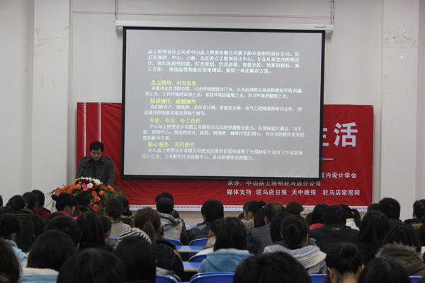 为提高我系艺术设计专业毕业生的就业品质,12月5日、6日晚在艺术楼52111教室举行了两场以丰富专业素养,增强市场竞争力为主题的交流会,此次交流会由我系和驻马店室内设计学会共同举办,中山品上照明有限公司承办。美术系副书记郭燕沫、驻马店室内设计学会常务副会长王建中、品上照明有限公司总经理赵朝阳出席了本次交流会,并发表了讲话。<?xml:namespace prefix = o ns = "urn:schemas-microsoft-com:office:office" />