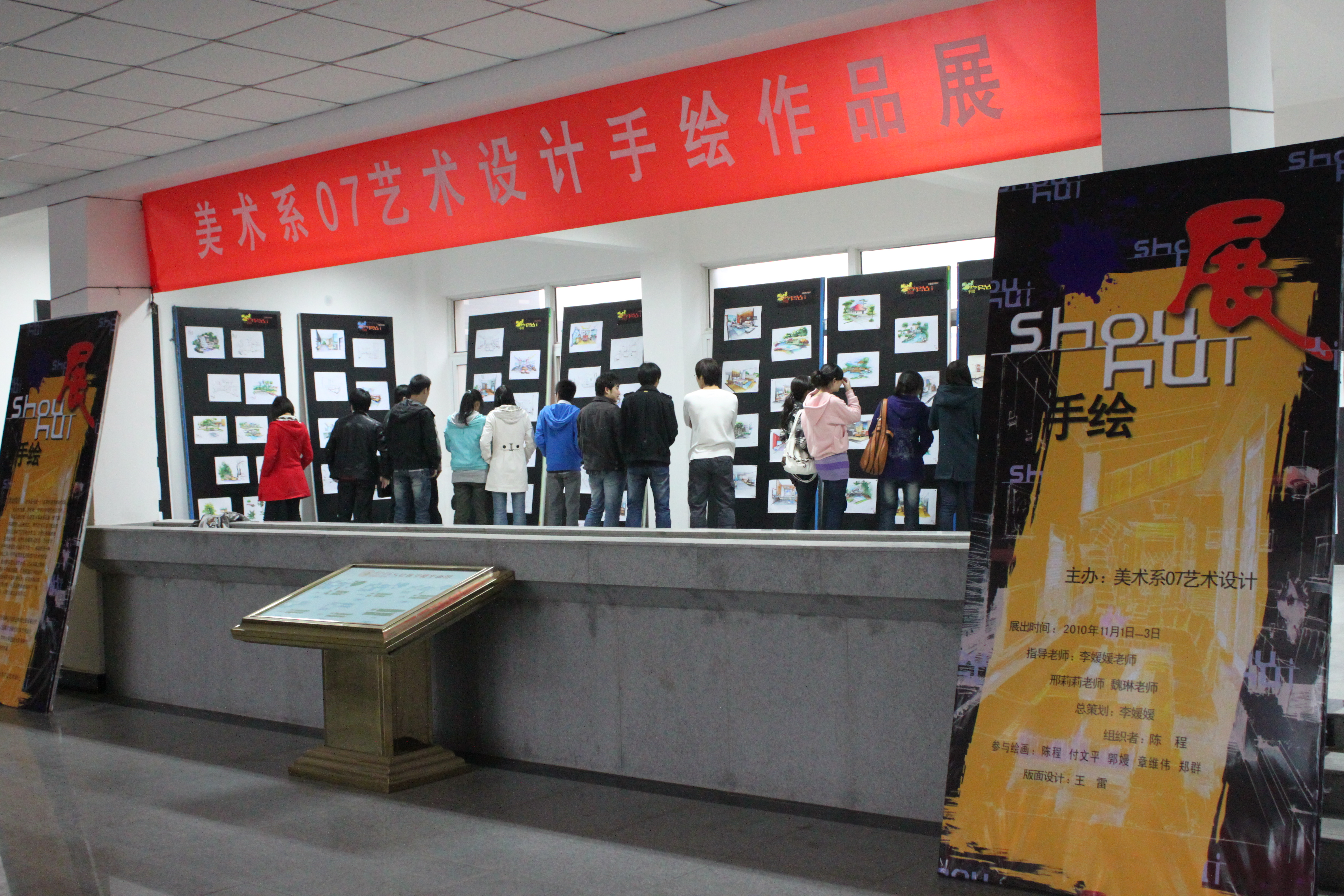 为丰富大学艺术生活,让更多的人了解环境艺术设计专业、了解手绘艺术设计。2010年11月1日07级艺术设计专业的陈程、付文平、郭嫚、郑群、章维伟五位同学在5号楼一楼临时展厅举办了以环艺设计为主题的金秋手绘作品展。此次展览在李媛媛老师的组织策划下,魏琳、邢莉莉老师的指导下完成。<?xml:namespace prefix = o ns = "urn:schemas-microsoft-com:office:office" />