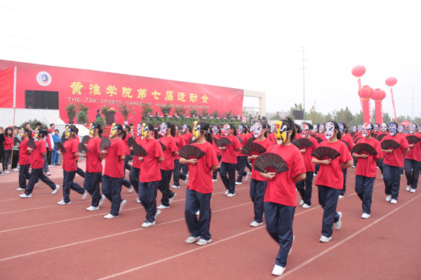 这是一个热情如火,团结向上的集体。80人方队头戴中国传统的京剧脸谱,手拿黑色折扇迈着整齐的步伐向主席台缓缓走来在经过主席台时摆着别出心裁的造型。这是美术系的师生把中国传统文化巧妙地运用到运动会开幕式之中。这张承载着中国文化精髓的脸谱,淋漓尽致地展现深厚的文化积累。