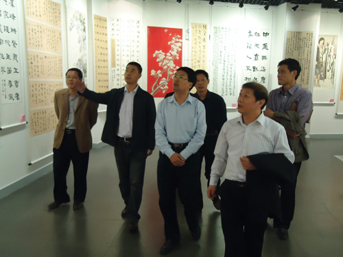 <?xml:namespace prefix = st1 ns = "urn:schemas-microsoft-com:office:smarttags" />10月17日下午,党委书记景照辉、院长介晓磊在后勤等相关部门领导及美术系主任梁立民、书记李信生的陪同下首先参观了艺术楼展厅及正在展出的作品,院领导对展厅的一些相关问题做出了指示。随后党委书记景照辉、院长介晓磊在梁主任和李书记的指引下来到艺术楼二、三楼参观美术系课程阶段展,并对同学们的作品给予了肯定,同时对美术系的一些烘托学习氛围的做法也给予了较高的评价,并参观了美术系的办公环境。最后指示系领导班子要在工作上有更大的突破和进步。<?xml:namespace prefix = o ns = "urn:schemas-microsoft-com:office:office" />