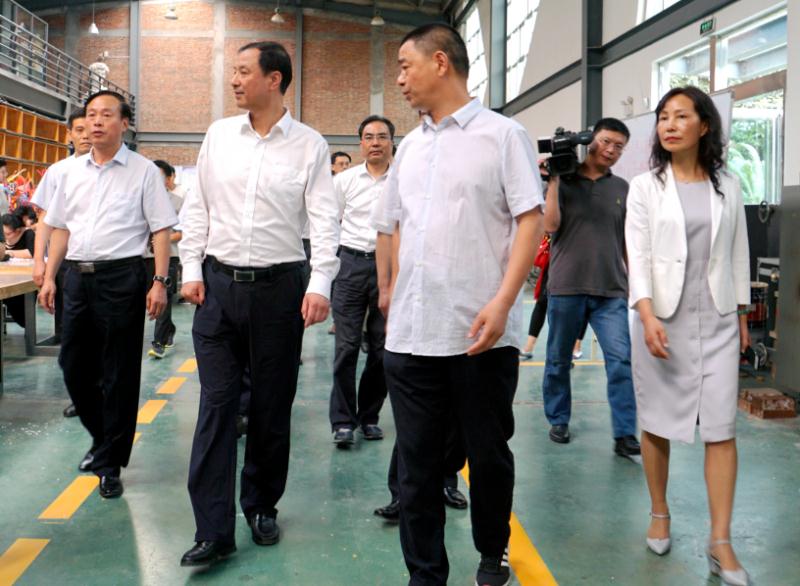 校党委书记杨德东,校长谭贞,党委副书记王冰,副校长张新艳、王东云陪同孙尧、徐济超一行调研了艺术设计学院。