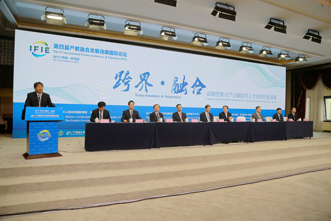 6月23日上午,在教育部、河南省人民政府的大力支持下,以“跨界•融合——战略性新兴产业崛起与人才培养机制改革”为主题,由教育部学校规划建设发展中心、应用技术大学(学院)联盟主办,驻马店市人民政府、黄淮学院承办的第四届产教融合发展战略国际论坛在驻马店市嵖岈山国际会议中心隆重开幕。
