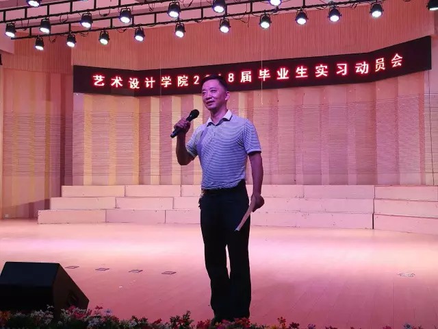 近日,为进一步推进毕业生实习工作的展开,深化学生对毕业实习的认识,向学生强调毕业时习要求,我院召开2018届毕业生实习动员大会。艺术设计学院党总支副书记辛琳琳,副院长陈向阳代表学院出席;大会还邀请了河南无限沟通文化传播有限公司总经理刘波;我院15届优秀毕业生、河南天易云育科技有限公司总经理孙磊等人。