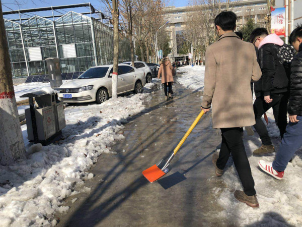 此次活动起止时间为12:00~2:30,党员和学生会干部分为两批,完成这个冬日里暖流的接力,一条本被积雪堆满的道路在他们的努力下重新变得整洁,方便了同学们的出行。