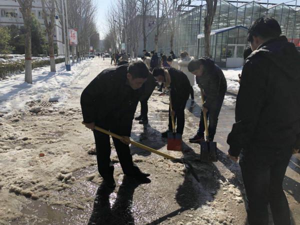 凛凛寒风不能阻挡同学们高涨的热情,铲雪过程中,同学们干劲十足,大大提高了效率,提前完成了工作,体现出我院同学朝气蓬勃的精神面貌。