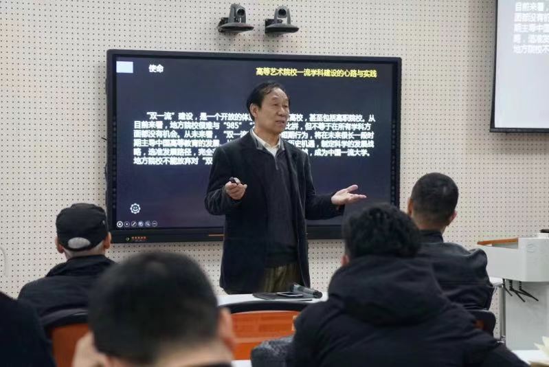 11月21日下午,在我校教师发展中心,陈汗青教授倾其几十年的专业和学科发展的实践经验,做了一场题为《高等艺术院校一流学科建设的心路与实践》的报告。此次讲座由艺术设计学院和教师发展中心主办,艺术设计学院院长梁立民主持,艺术设计学院、动画学院、建筑工程院学院的部分领导和师生聆听了报告。陈教授以争创双一流为目标,指出地方院校要扎根地方,合理定位,特色发展,突出应用、开放办学,并从学科方向、学科团队、教科基地、项目成果、机制氛围等方面把脉问诊,为各个学院未来的专业建设、学科发展发展提出了宝贵的建议。