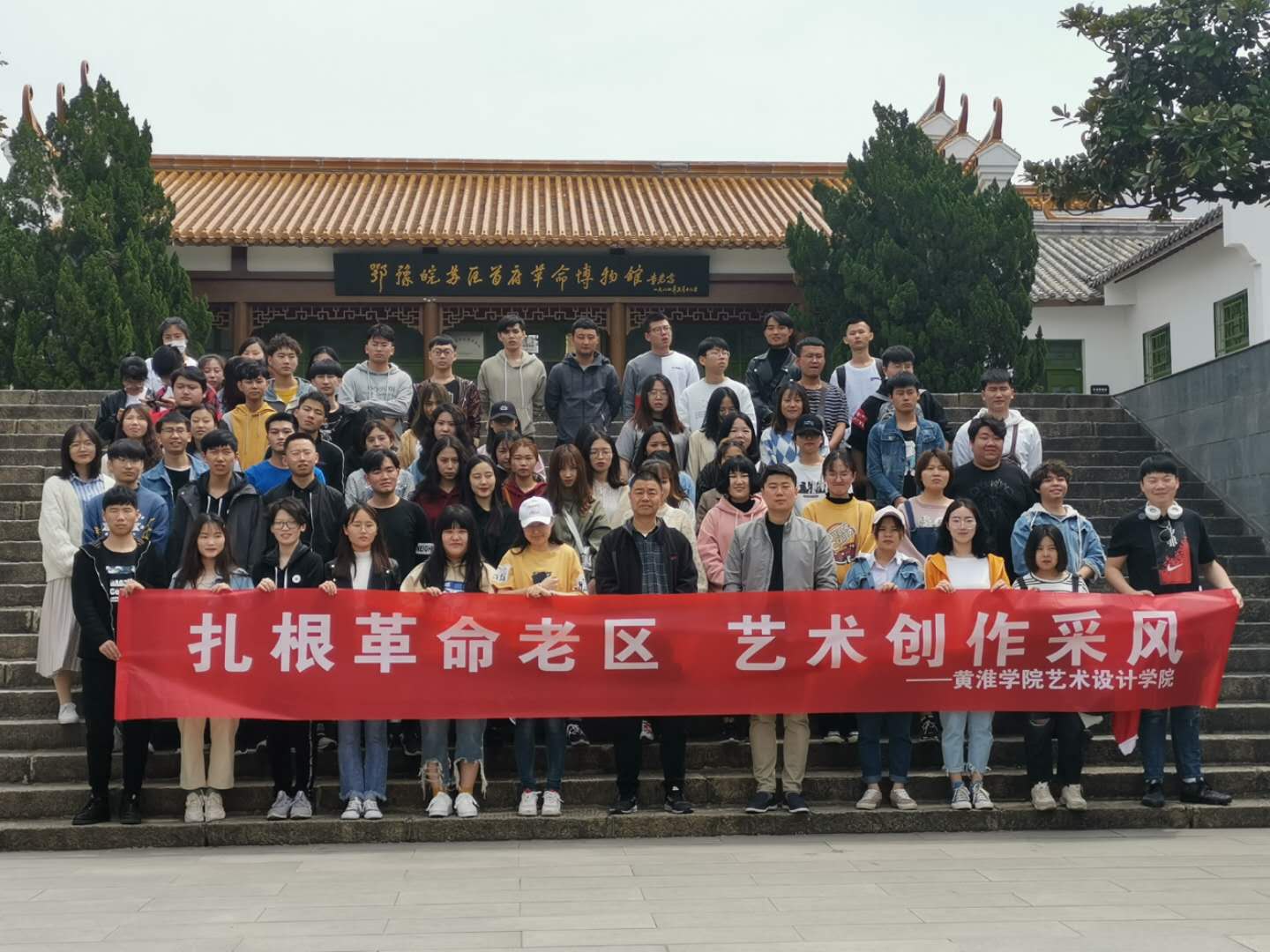 4月15日上午,黄淮学院艺术设计学院一行院长梁立民,副院长李伟力带领师生们深入大别山革命老区进行创作采风。上午11时,师生们抵达位于新县的鄂豫皖苏区首府革命博物馆瞻仰革命先烈,缅怀先烈事迹。老师、同学们在无限缅怀革命先烈的同时,静静地聆听讲解员讲述革命先烈可歌可泣的英雄故事。通过一幅幅发黄的照片,一句句铿锵的誓言,一段段难忘的记忆,我们真切地感受到了革命老区共产党人在血雨腥风年代为寻求民族独立与国家解放所做的艰苦卓绝的斗争。参观过程中,梁立民院长勉励同学们一定要珍惜今日的幸福生活,不忘革命先烈遗志,勤奋刻苦,不畏困难,为实现中华民族伟大复兴中国梦贡献力量。参观最后,所有师生向革命英烈深深鞠躬表达心中无限的敬意。