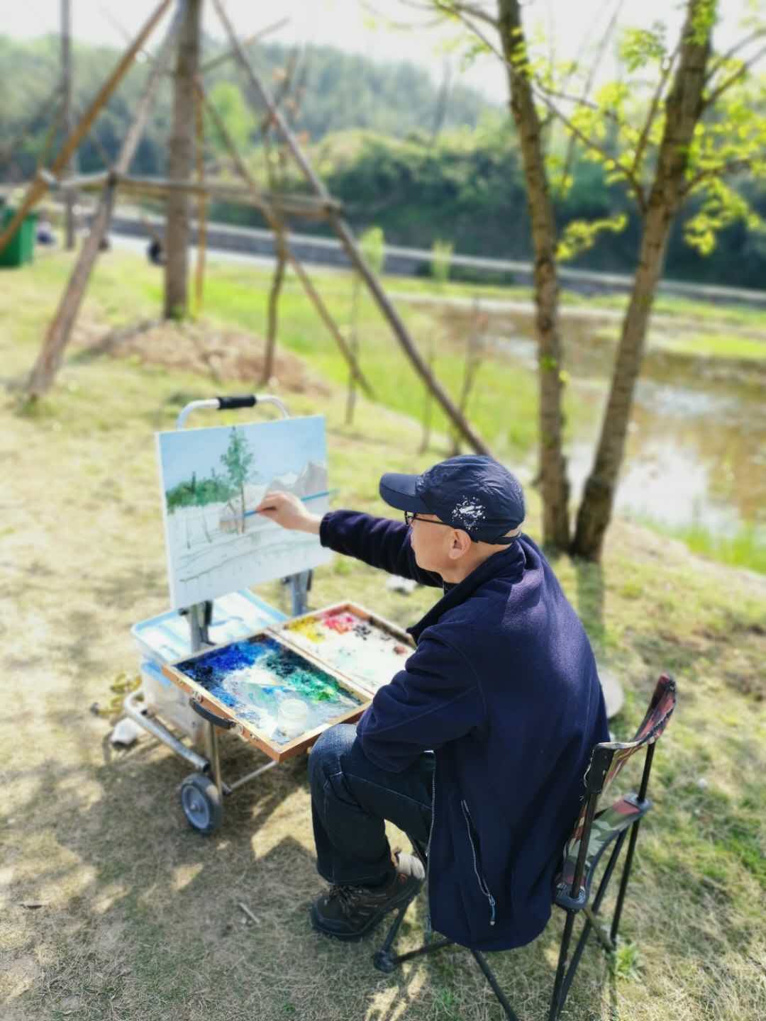 下午,艺术设计学院的师生们抵达位于红色革命根据地大别山区的光山县东岳寺村的艺术写生基地。东岳寺村美术写生基地位于大别山北麓由深山向浅山丘陵地区延伸的过渡地带,素有“北国之江南,江南之北国”之称,是镶嵌在豫南大地上一颗璀璨的珍珠。写生基地紧邻泼陂河水库,这里山峦延绵起伏、峰高谷深、河流交错、林木葱郁,这里的村民淳朴自然、勤劳勇敢、热情好客,属国家级传统古村落保护区域。四月的东岳寺村田间地头或古村小巷,处处如画,也处处入画。置身于美景中,师生们纷纷拿起画笔,进行艺术采风。师生们忙于创作的身影为东岳寺乡增添了一抹亮丽的色彩。