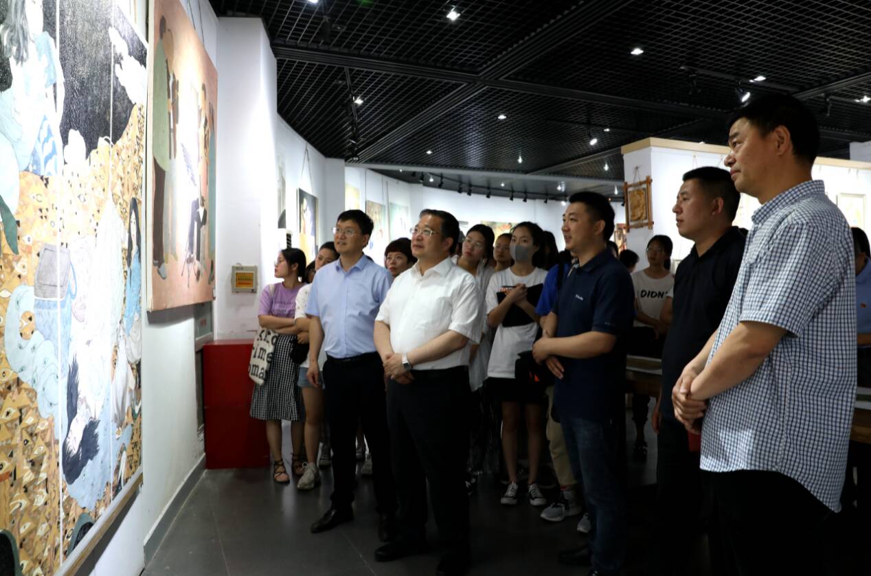 在同学们热烈的掌声下迎来了宋彦军教授。讲学伊始,梁院长表示,大学之大,不仅要有大楼还要有大师,而此次回到家乡的宋彦军教授便是为我院美术发展带来了新的指导方向。随后,由副校长王东云向宋彦军教授颁发聘书。接着由党委书记李国胜讲话,他表示,在“五四精神”的引领下,对学生而言,艺术设计学院的学生要不忘初心,勇做奋斗者、做新青年、做追梦者。对学院而言,艺术设计学院的学生、老师最有这样的能力、潜力,以艺术奉献祖国,以艺术服务社会,以艺术奉献人民,以艺术美化生活,以艺术引领时代,从而在走好自己的艺术之路的同时,达到人生的艺术价值。随后,宋彦军教授表达了对李书记邀请的感谢,接着大家便移步美术馆,由宋教授为我院美术学毕业设计作品做现场指导。宋教授对我院毕业设计作品给予了充分的肯定,他强调,创作源于生活,学生们创作的完整性和技法表现上还需要加强。最后,李国胜书记感叹,要通过艺术设计学院来提高黄淮学院的整体水准和涵养,艺术设计学院的任务很艰巨也很重大。