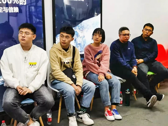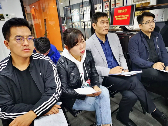 ▲艺术设计学院李信生书记及老师们听取实习成果汇报