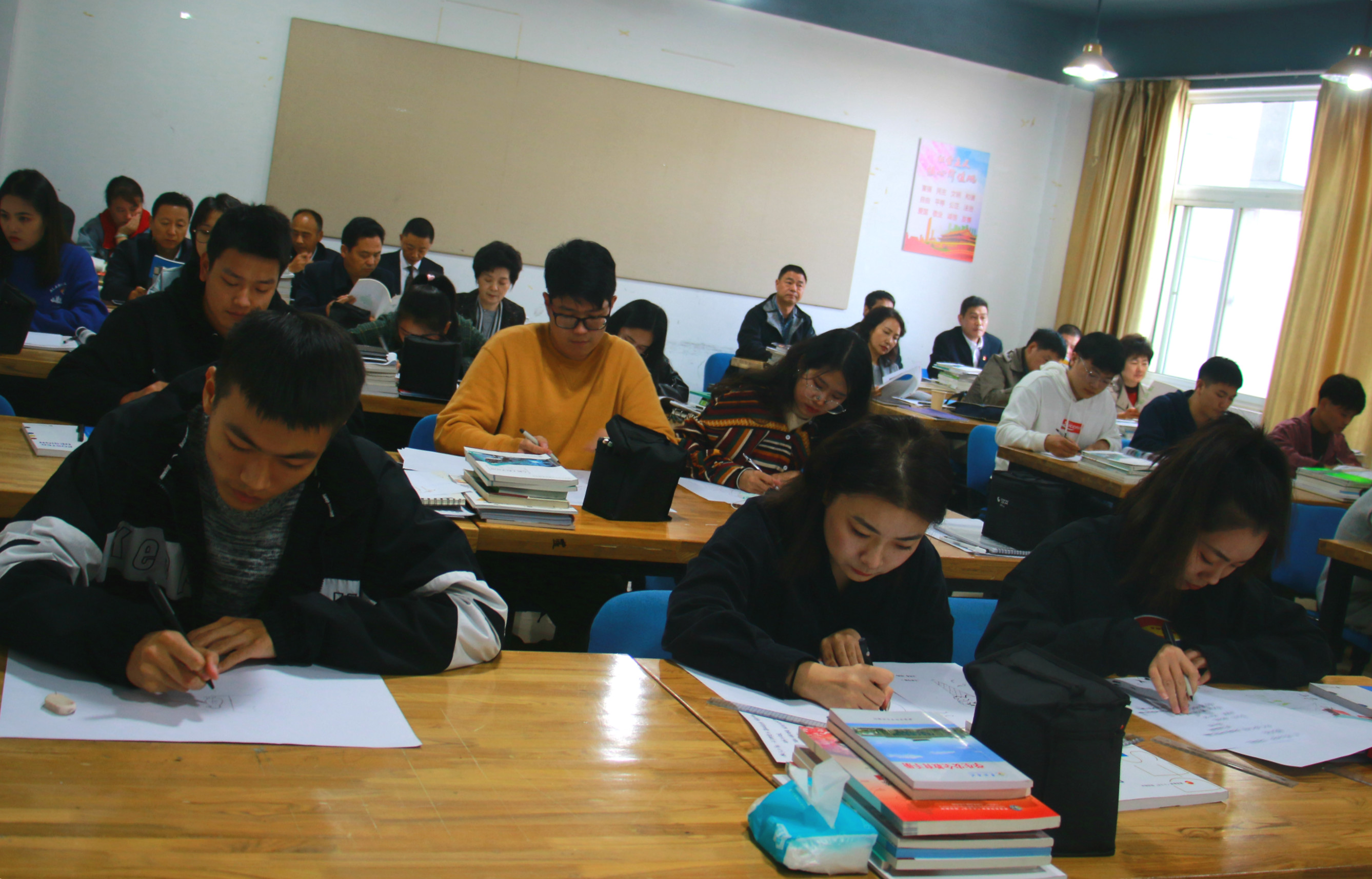 谭贞一行首先在艺术楼204教室听取了董庆涛讲授的《招贴设计》课程。之后,校领导一行到美术学工作室、党员活动室进行调研和座谈。艺术设计学院院长梁立民从“一院一专业”建设、教学基层组织建设、“一师一金课”建设、精彩课堂与课堂革命、审核评估工作推进等方面进行了汇报。教师代表围绕教学基层组织建设、金课建设、课堂革命、专业导师制实施、以赛促学等方面分别进行了发言。相关部门负责人对教师提及的问题分别进行了答疑解惑。张新艳结合艺术设计学院的特点,从职称评审、人才引进、博士培养、双师型队伍建设、教改项目申报等方面进行了政策解读。