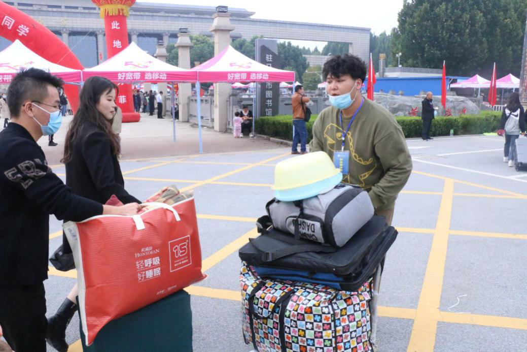 (报到处志愿者热情服务2020级新同学)
