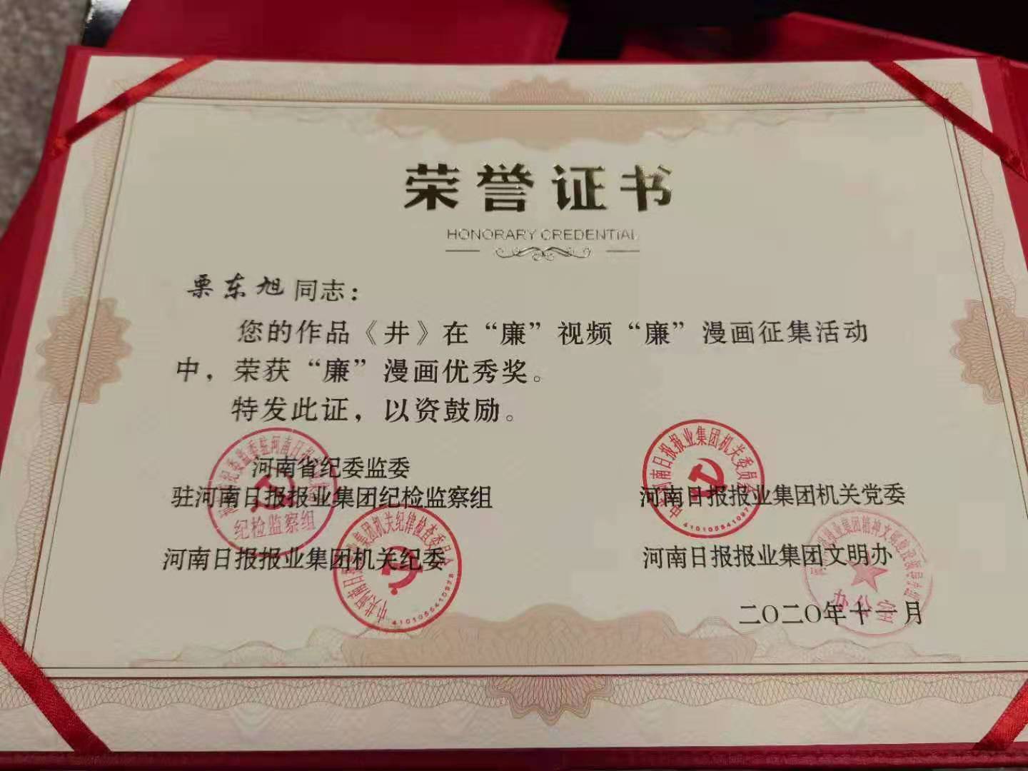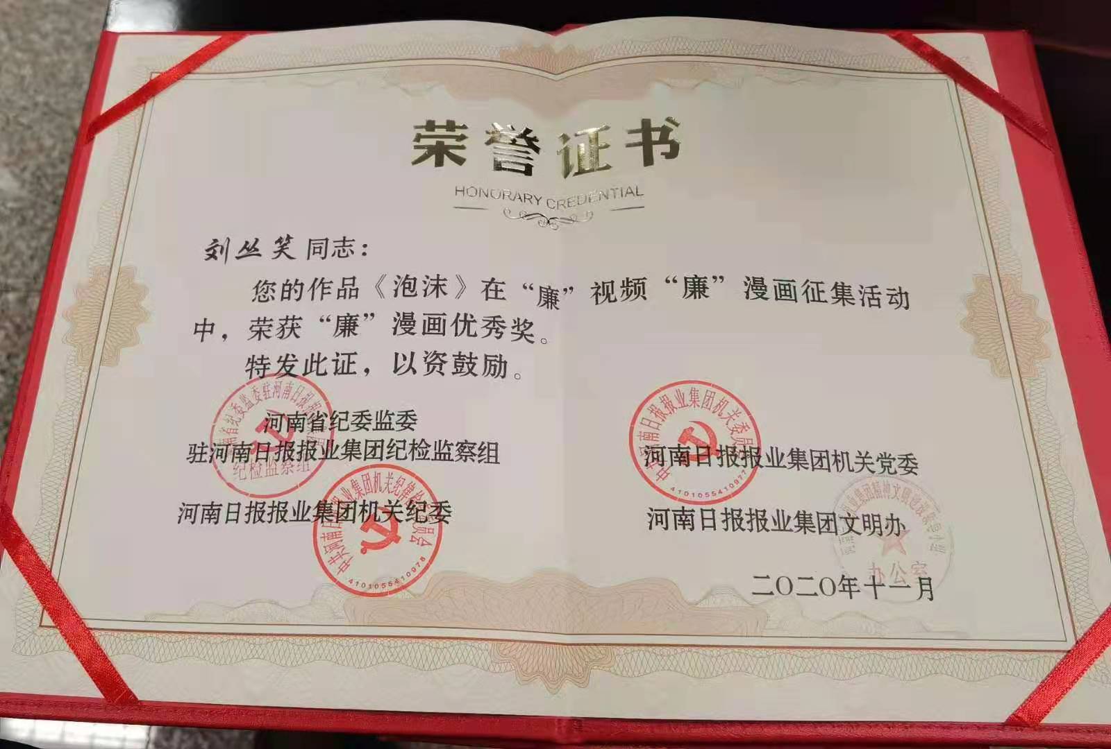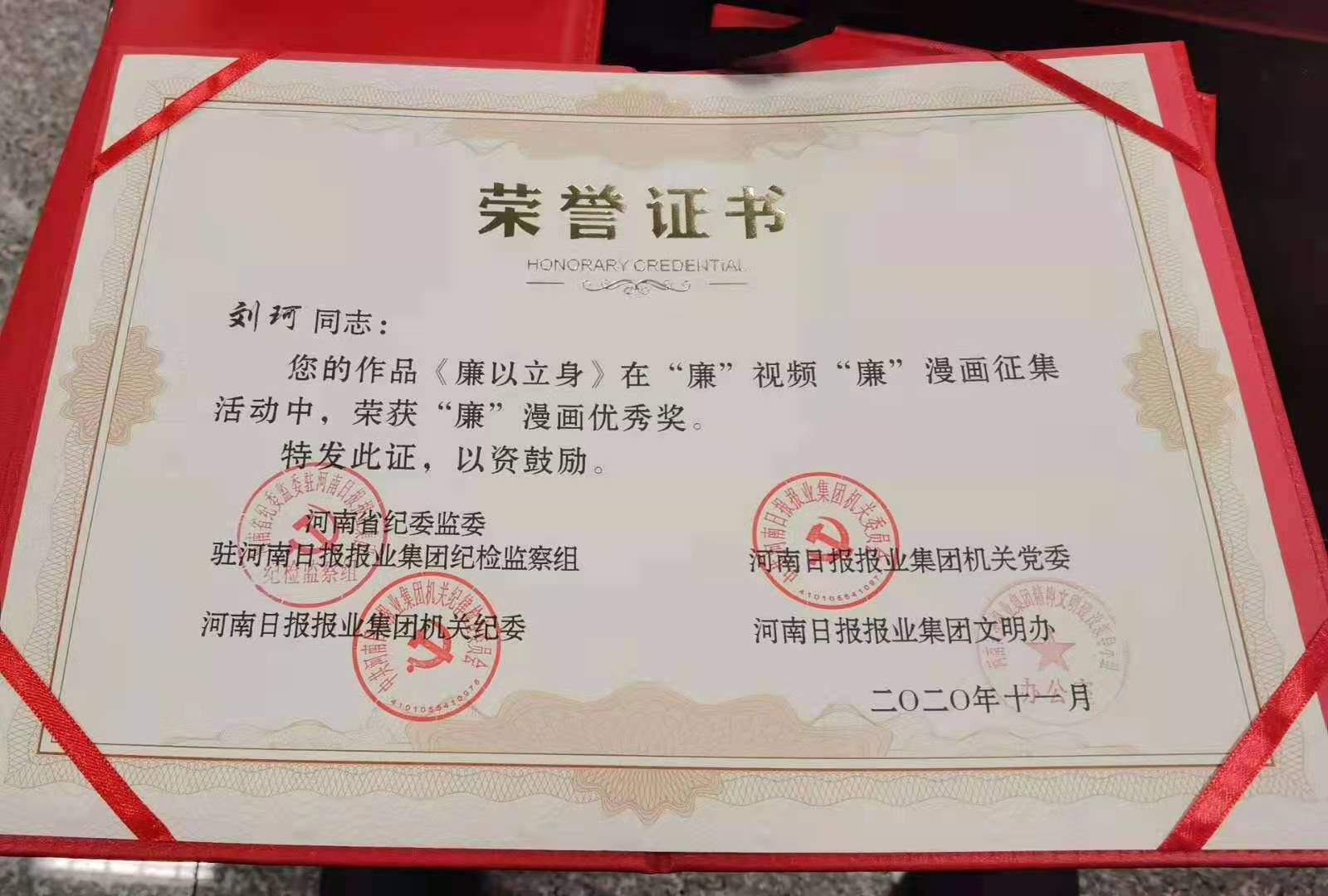 近日,我院教师栗东旭,学生刘珂、刘丛笑在河南日报报业集团主办的“廉”视频“廉”漫画大赛中分别获得优秀奖。