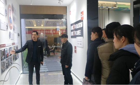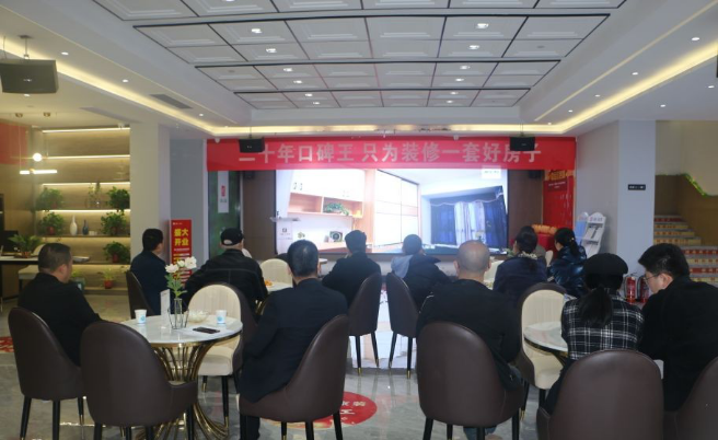 参观工艺间后,在一楼营销大厅大地大家装播放了公司宣传片,使考察团对公司的品牌影响力有了直观的认知。