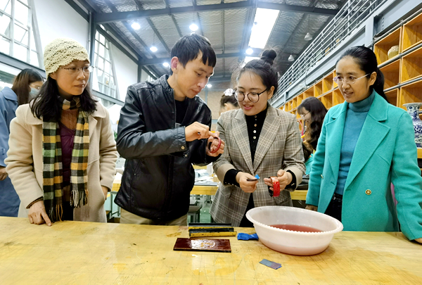 漆画艺术有绘画和工艺的双重性,它既是艺术品,又是和人民生活密切相关的实用装饰品,与美术学专业装饰艺术联系紧密。通过这次讲座和交流活动,不仅拓宽了美术学专业师生艺术视野,同时打开了装饰艺术方向教学的思路。