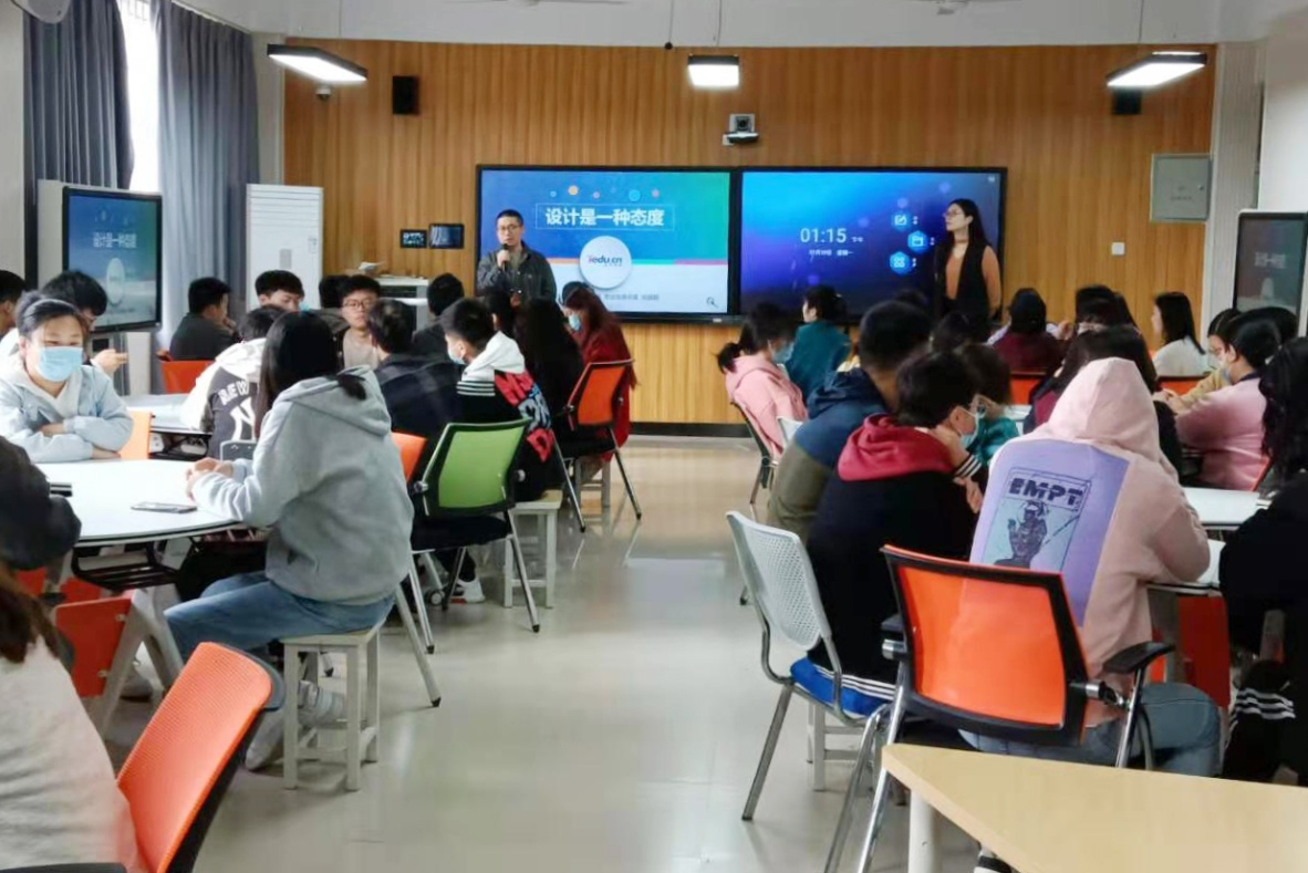 主讲人纪园园老师以“设计是一种态度”为题目,首先向同学们分析了大环境下互联网的发展及设计行业的现状,又分别从专业方向、知识储备、就业标准向同学们剖析了平面设计、UI设计、界面设计等相关职业岗位对未就业学生提出的挑战,让学生们更好地了解专业最新动态,知晓市场需求及专业发展前景,为拓宽就业思路打下基础。