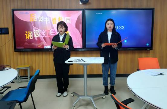 活动中,同学们兴致盎然地相互介绍自己的推荐书目,2019级美术学专业1902B班“红色经典朗读”环节阵阵掌声回响在教室走廊;2019级视觉传达设计专业1902B班以 “书籍关键词” 、“书籍佳句”、“游戏诵诗歌”等趣味活动将现场氛围推向高潮。随后,老师带领着同学们共同感受书中佳句的意味深长,并组织大家进行感悟交流。优秀书籍的精神内涵能够引领大学生树立良好的思想,帮助大学生成长成才。
