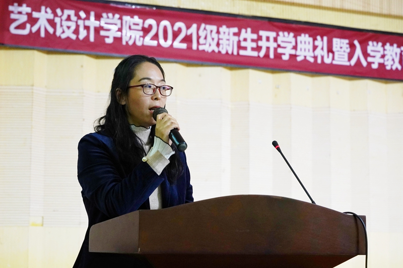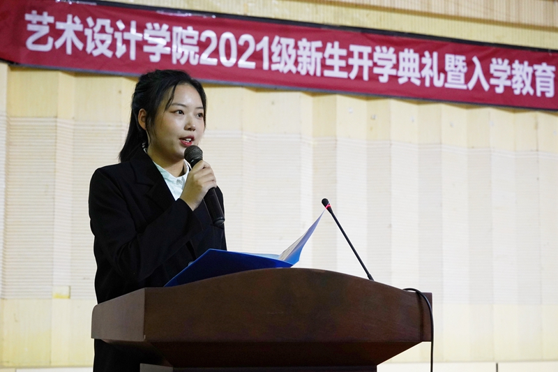 10月10日晚,艺术设计学院2021级迎新大会在艺术楼音乐厅隆重举行。院领导班子成员、各部门负责人、2021级全体新生参加会议。大会由副院长庞博主持。