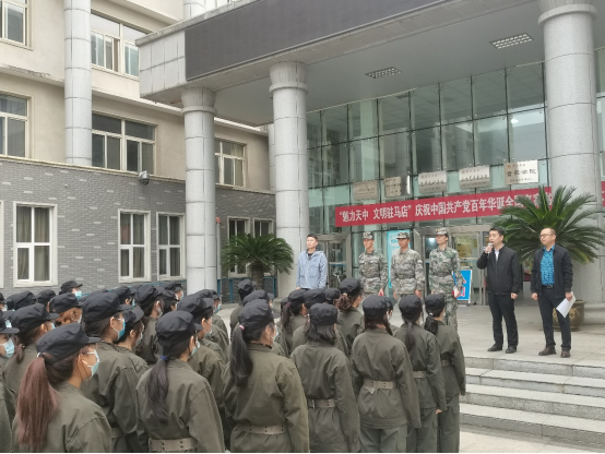 活动开始,首先,院党委副书记丁烨为同学们隆重介绍承训教练员,伴随着同学们的掌声,军训教官迈着整齐的步伐进入会场,同学们见了不由得肃然起敬。接着,丁烨书记强调了军训工作的重要性,要求同学们提高思想认识,希望同学们以昂扬的斗志迎接军训中的各种挑战。最后,21级新生辅导员袁兴龙老师介绍新生军训的安排和为期14天的军训详细内容,带领同学们学习军训行为准则,并解读了《军事技能》课程成绩评定办法。