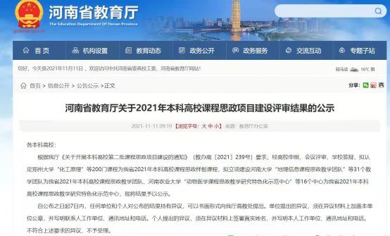 根据河南省教育厅关于开展本科高校第二批课程思政项目建设的通知》(教办高〔2021239号)要求,经高校申报、资格审查、会议评审,黄淮学院视觉传达设计实践课程思政教学团队,入选河南省2021年度本科高校课程思政项目拟立项建设名单。
