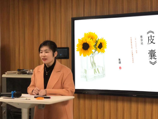 此次读书交流会朱鸽老师与同学们共享了一本“一本认心又认人的书”——《皮囊》。作者蔡崇达本着对故乡亲人的情感,用一种客观、细致、冷静的方式,讲述了一系列刻在骨肉间故事。随后,朱鸽老师结合自身援疆支教和就业的经历,对同学们提出了要不怕吃苦、直面人生、提前规划人生的建议,要塑造自己有好看的皮囊、有趣的灵魂、坚定的信仰和过硬的本领。