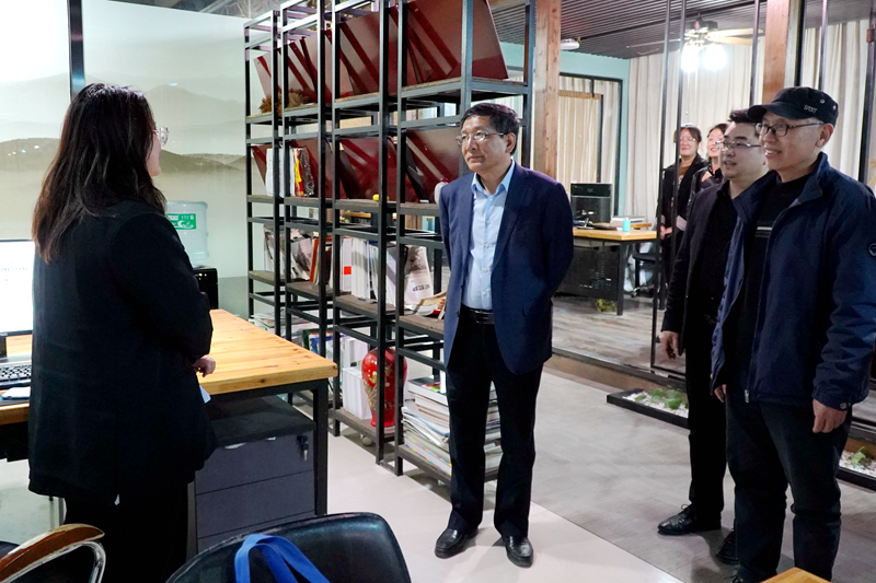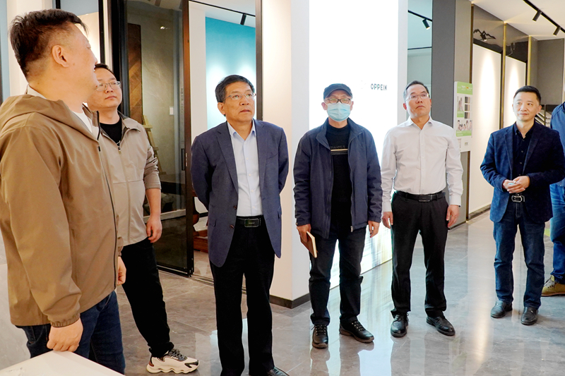 在东易日盛驻马店分公司,王冰一行在公司总经理花锟、副总经理杜光的陪同下参观了该公司设计部、装饰施工实景展示区、装饰材料展示区、定制家具展示区、项目洽谈区等。